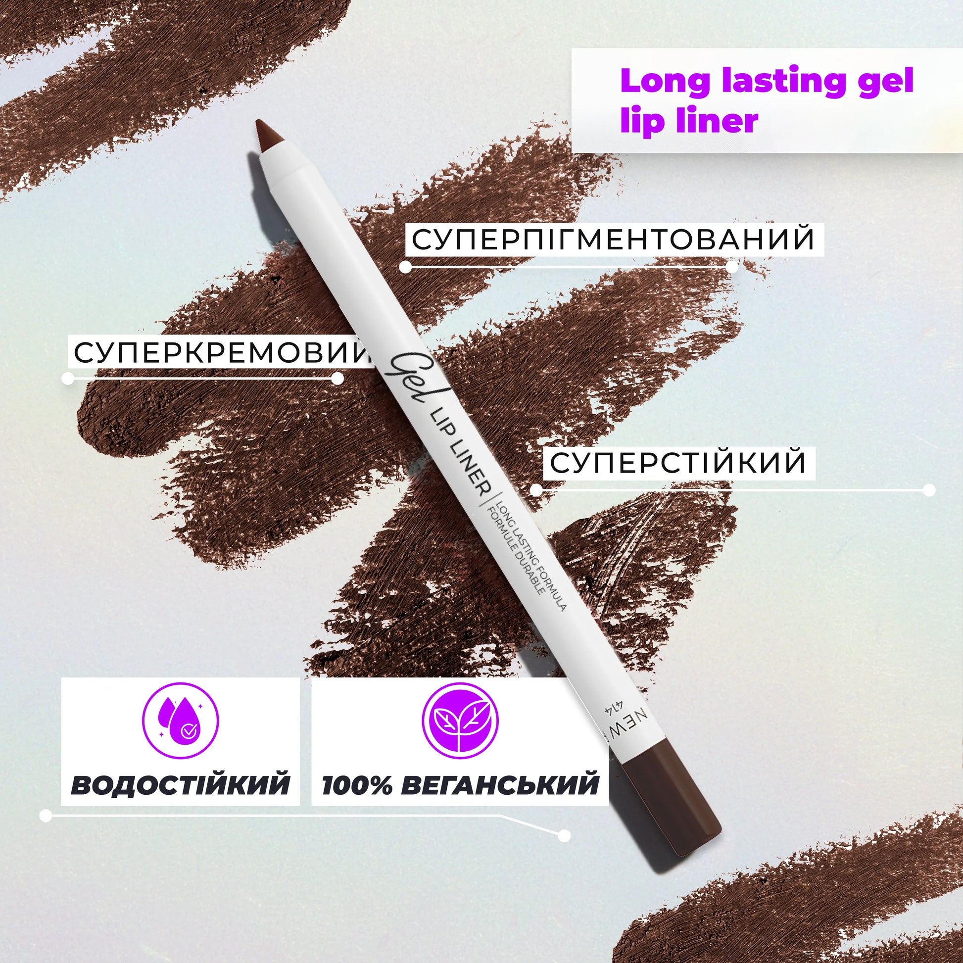 Почни з Long Lasting Gel Lip Liner — кремової формули, що легко ковзає, створюючи точну лінію й м’який матовий фініш без дискомфорту.